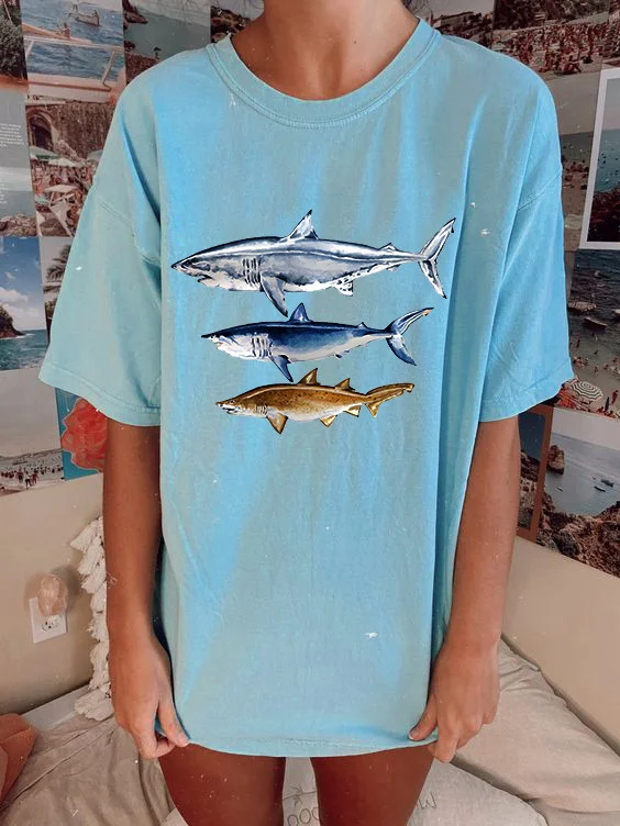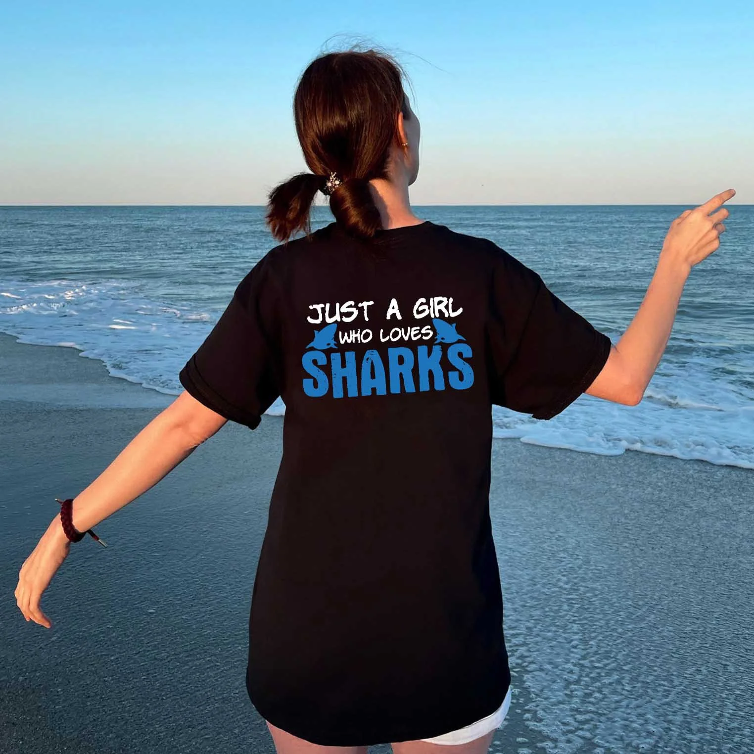 Women's Just A Girl Who Loves Sharks Print Loose T-Shirt