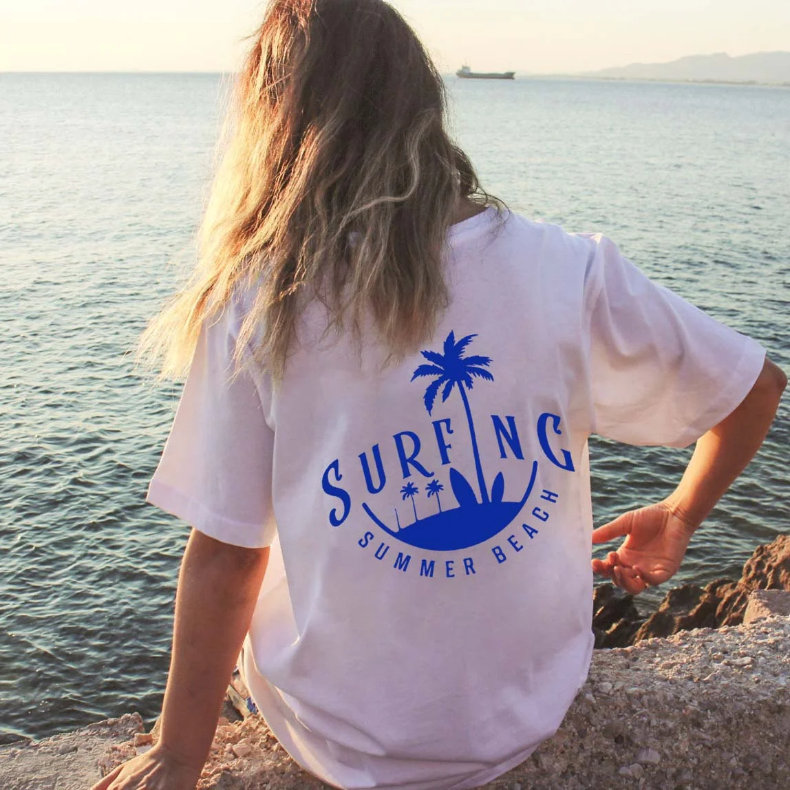 Women's Surfing Summer Beach Print Loose T-Shirt