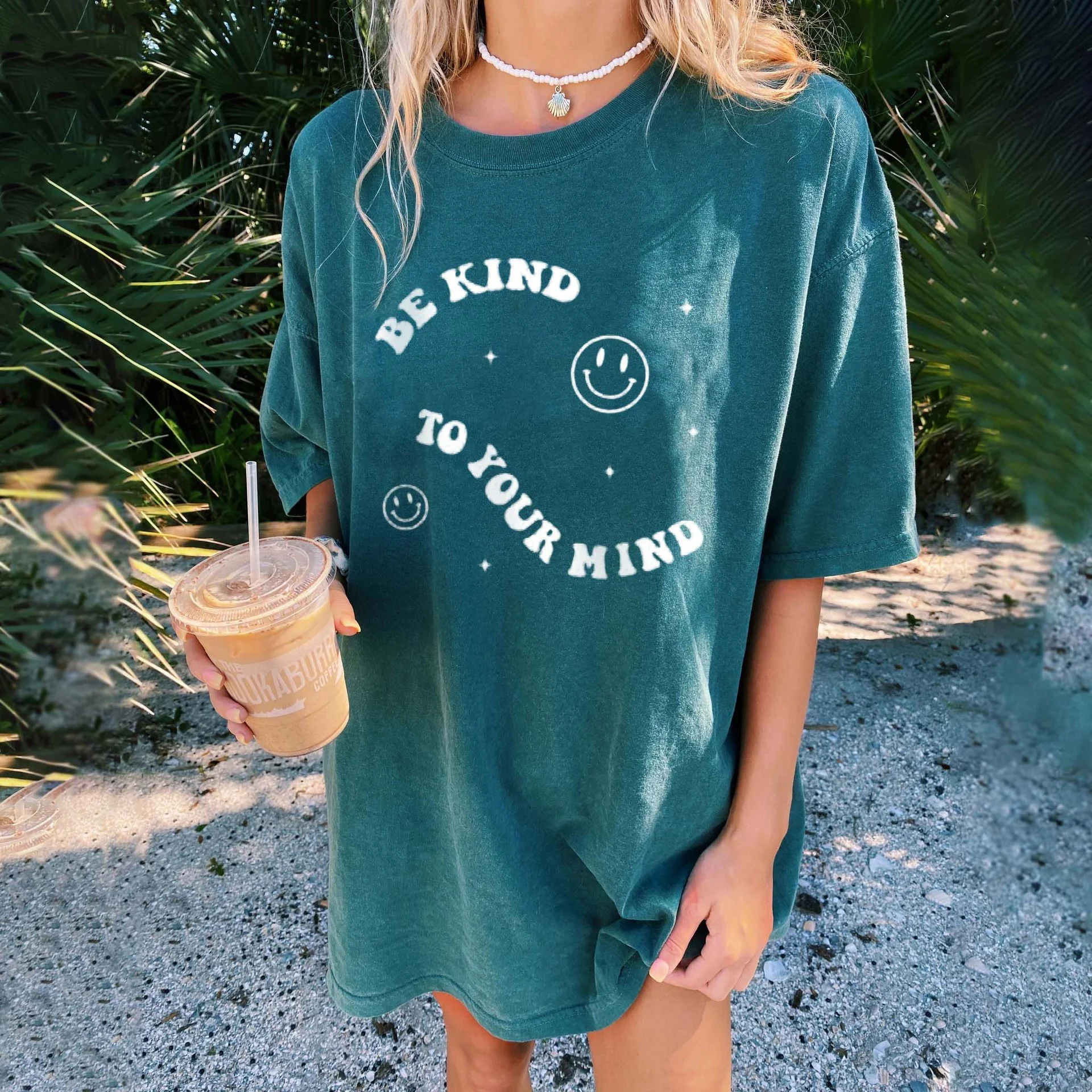 Women's Be Kind To Your Mind Smiley Cotton Oversized T-Shirt