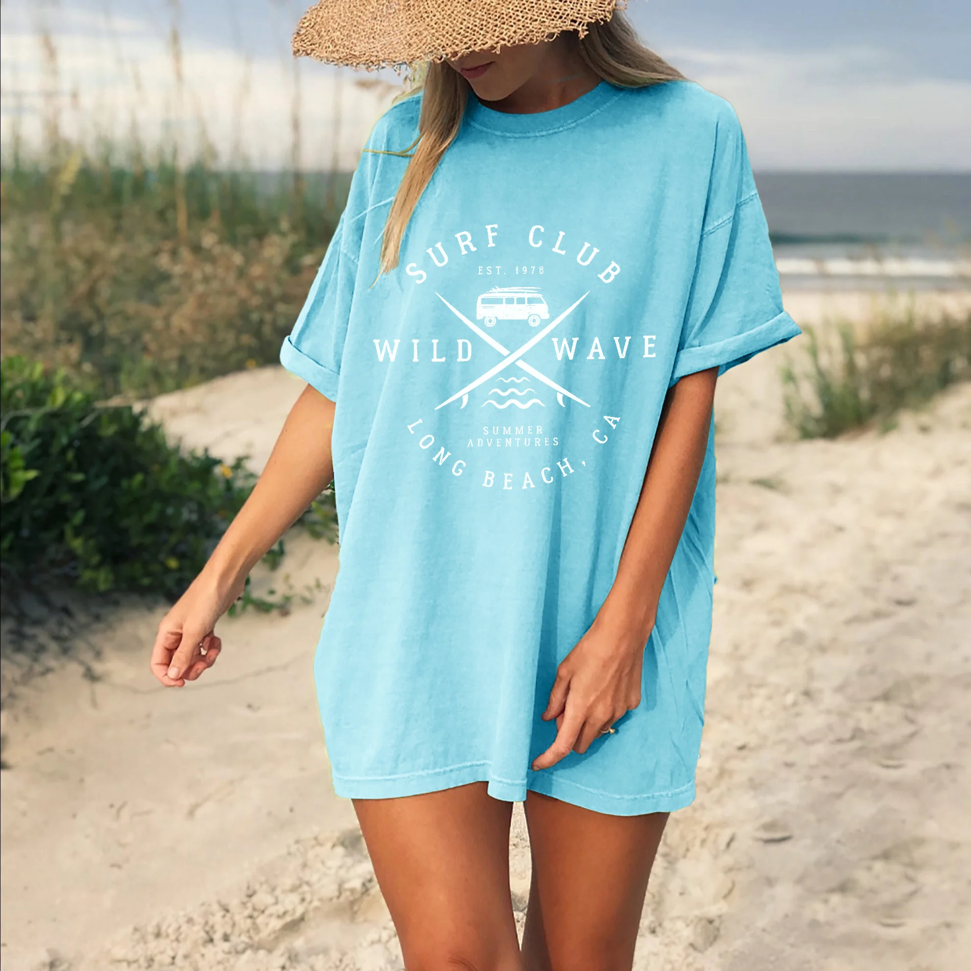 Women's Surf Club Wild Wave Print Loose T-Shirt