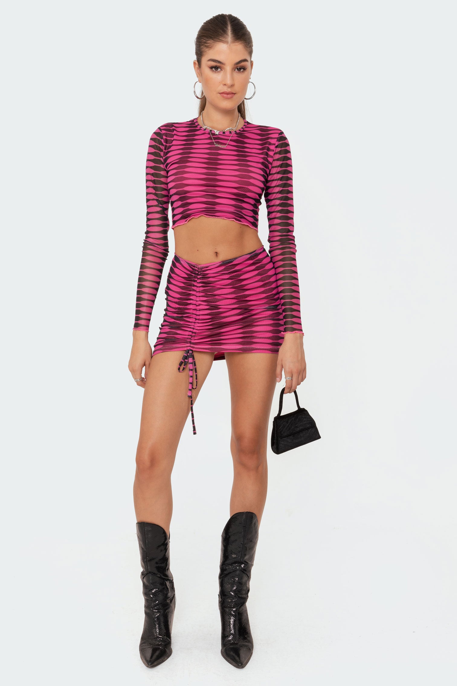Anisa Drawstring Mesh Mini Skirt