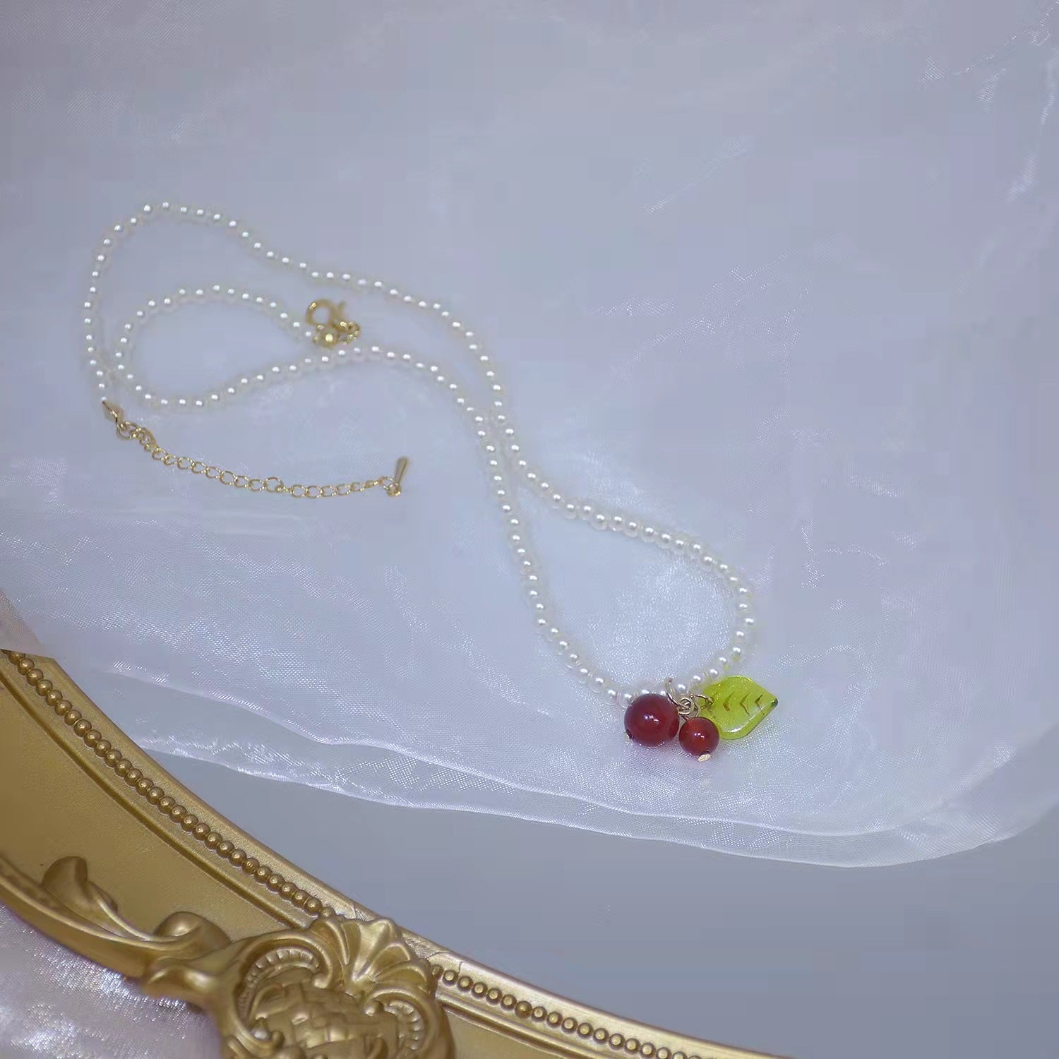 Brighten up any outfit with the Cherry Necklace featuring lustrous pearls . Add a playful flair with the crystal cherry pendant.