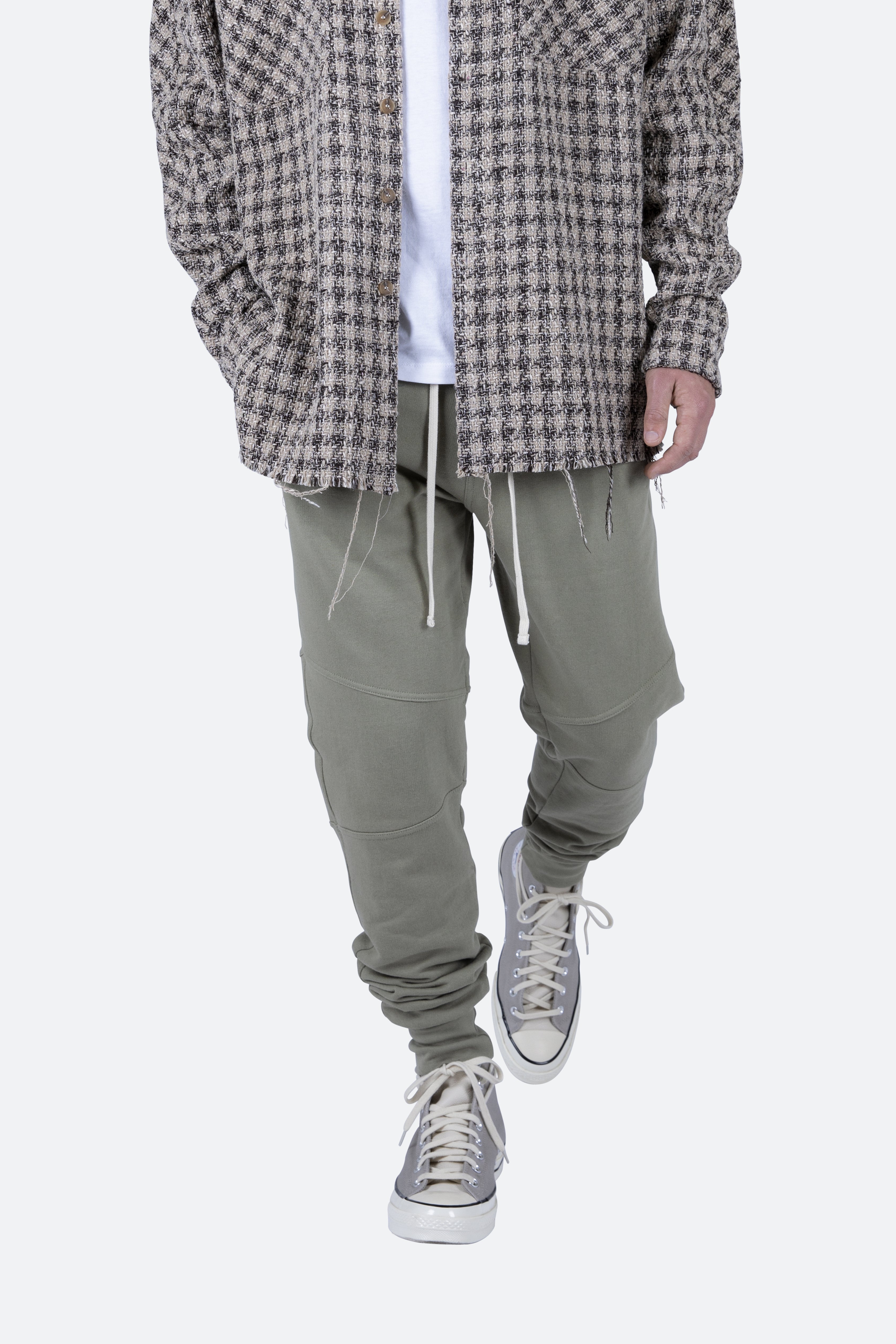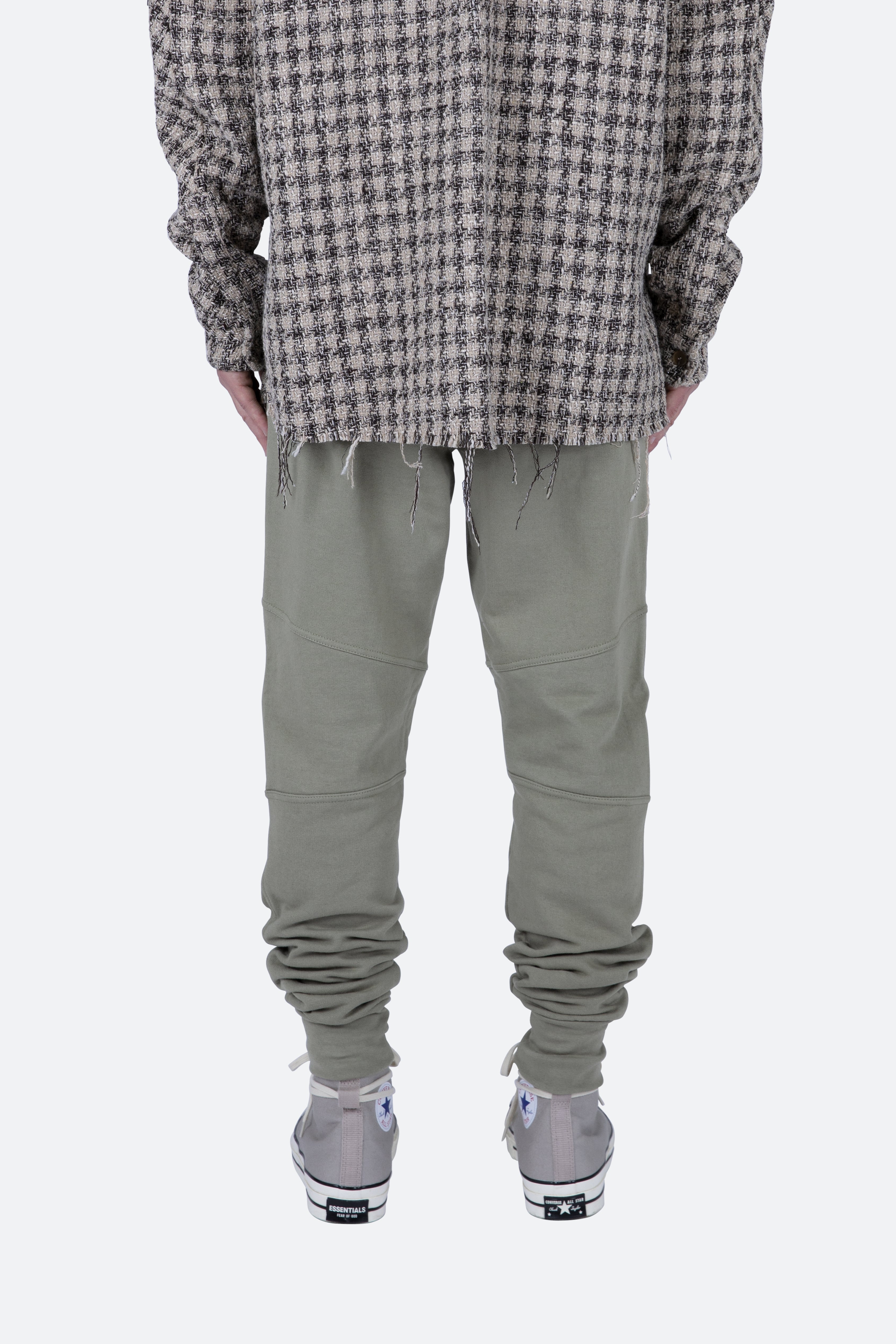 the?Cuffed Sweatpants?are?designed with a?straight fit that tapers to the leg opening, featuring a ribbing at the waist, off white cotton drawstrings, moto paneling details at the knee, and?finished with taller ribbing at the leg opening..