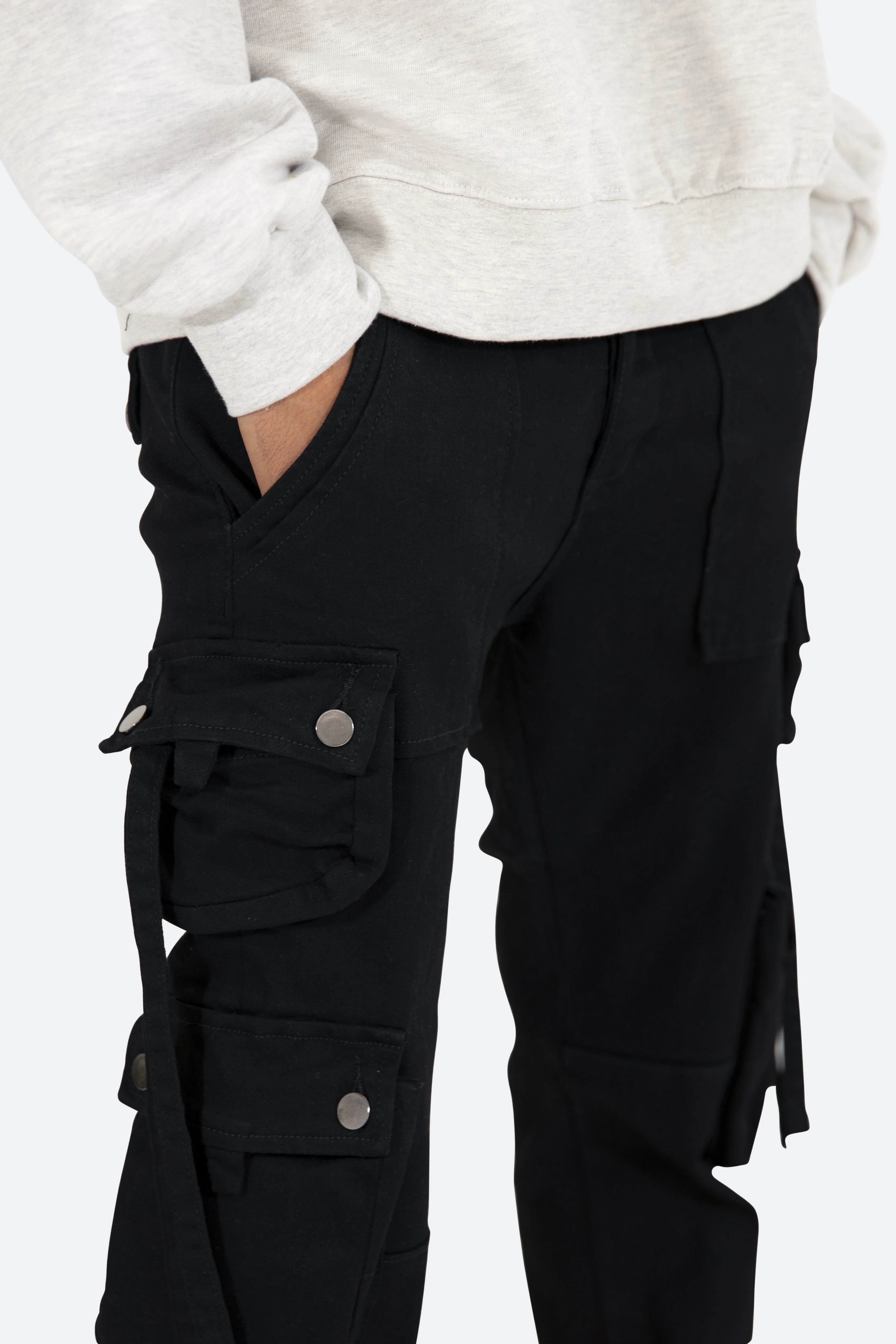 the D152 Strapped Cargo?Denim is designed with our new D fit which is relaxed throughout and an extended inseam for stacking, but also has a slightly longer rise and increased width in the thigh from our standard D fit. The D152 Strapped Cargo Denim also?features?cargo pockets at the outseam with cotton webbing closures.