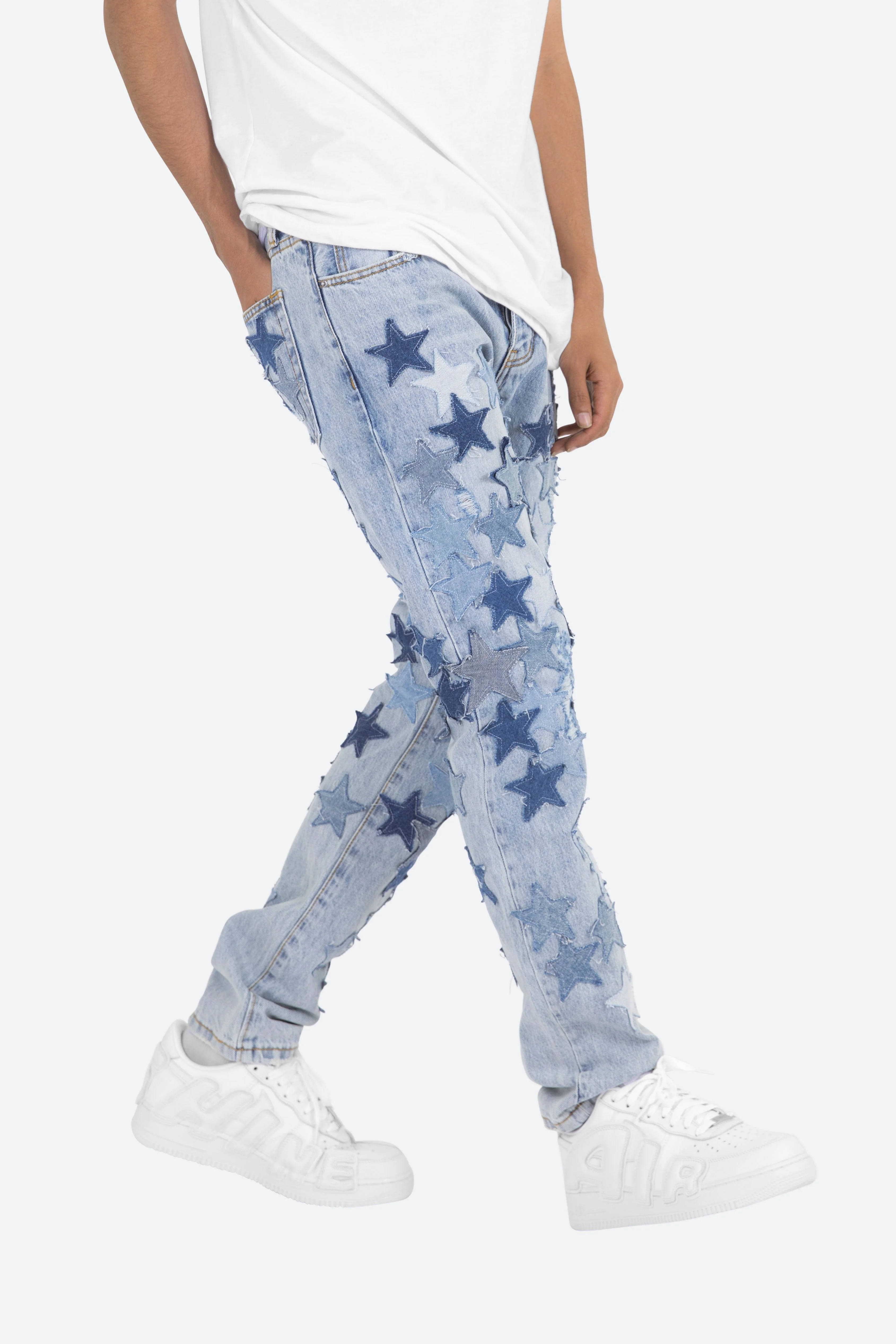 the D271 Star Denim is designed with our new D fit which is relaxed throughout with an extended inseam for stacking?and?features?a light wash?and finished with denim star appliques throughout.