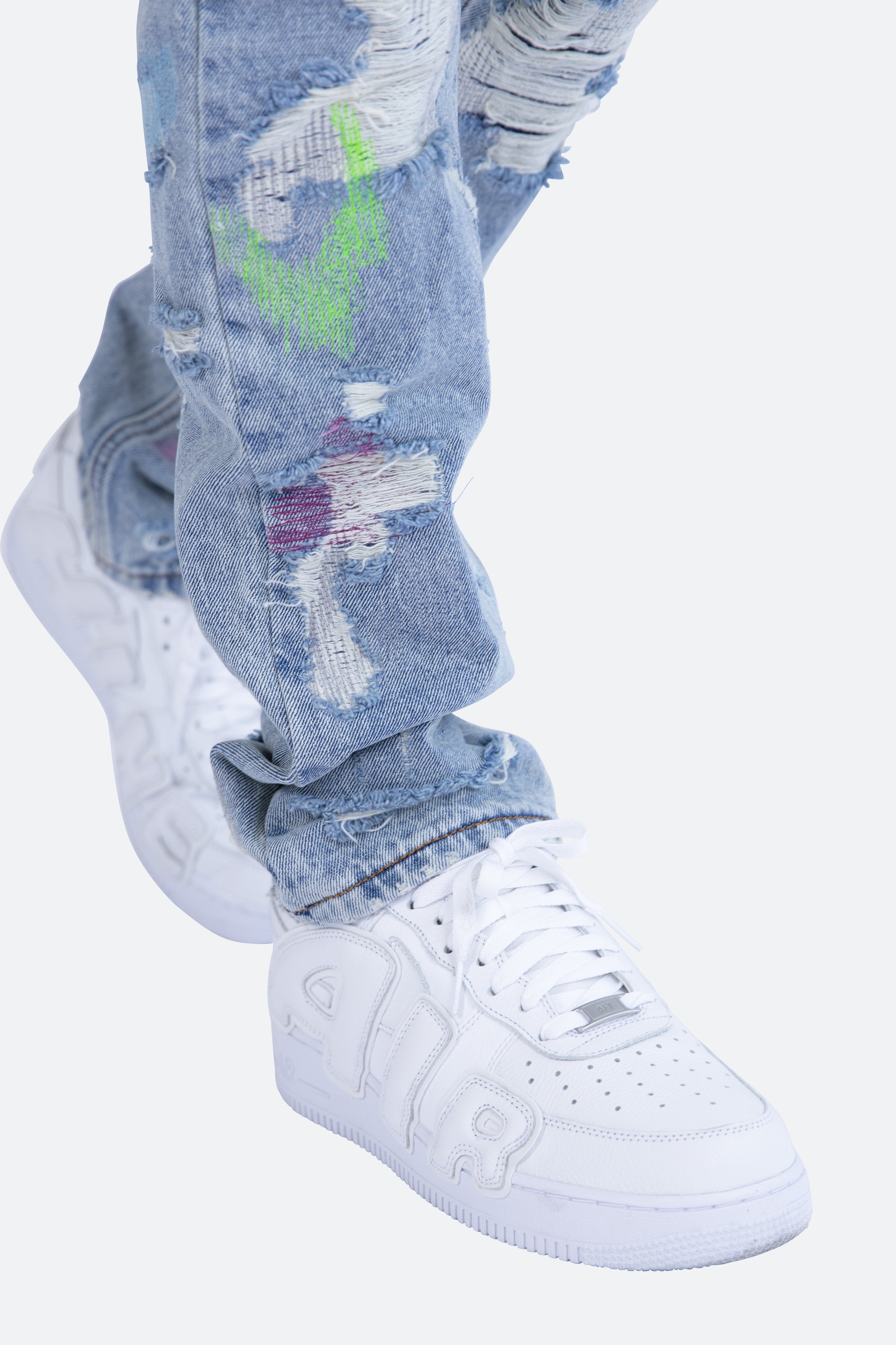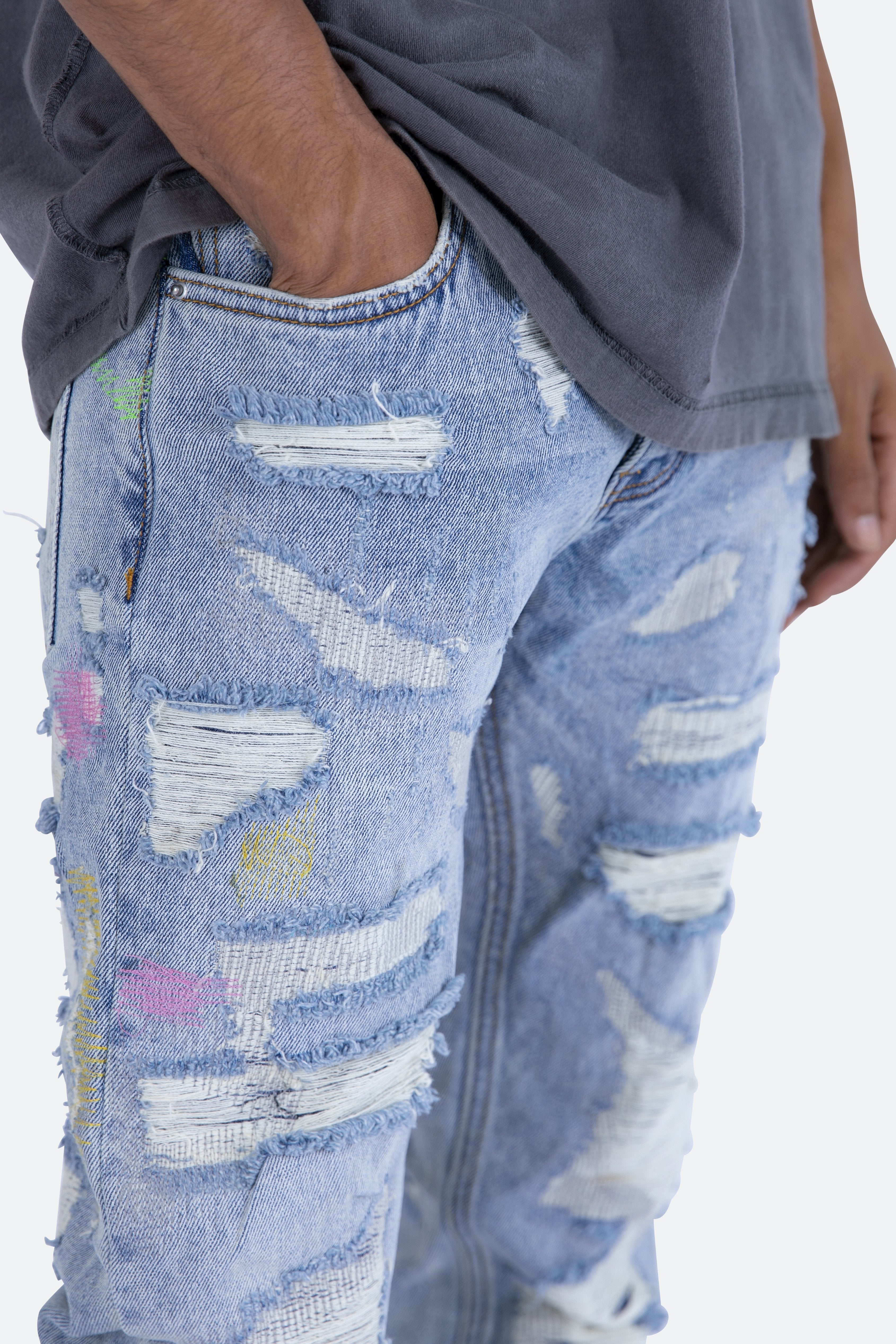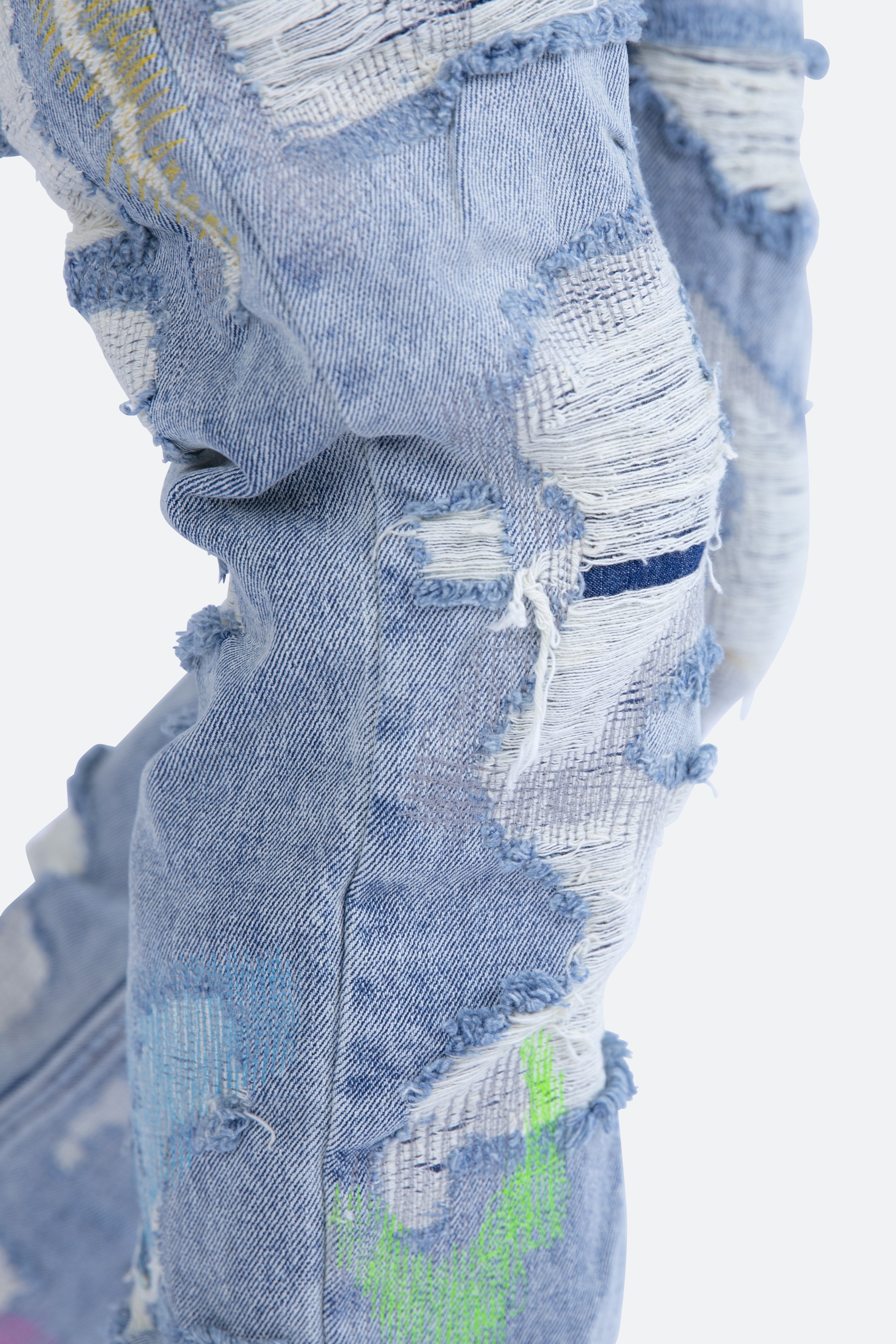 the D276 Denim is designed with our new D fit which is relaxed throughout with an extended inseam for stacking?and?features?a light wash,?distressing throughout, and finished with?multi color embroidery details throughout.