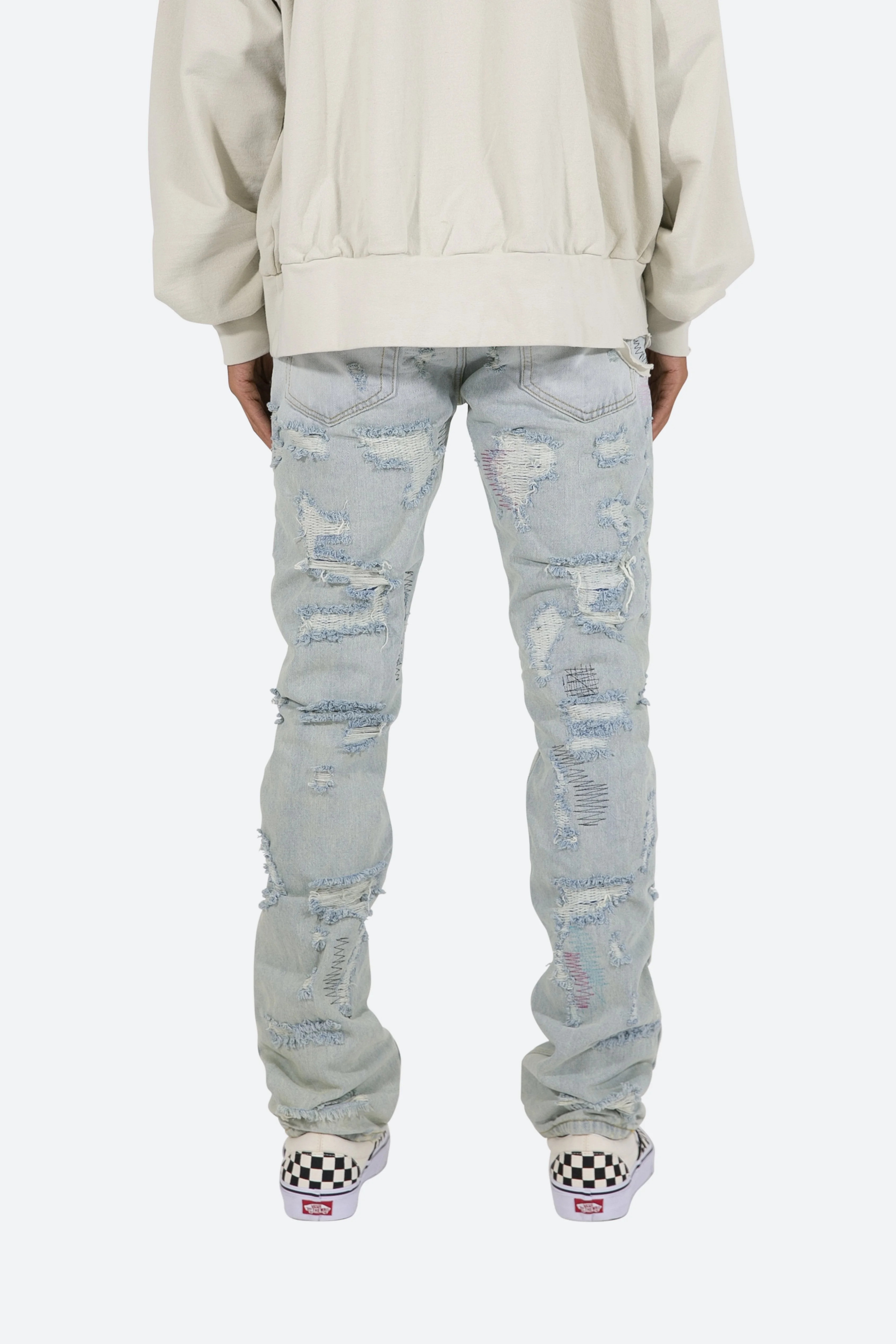 the D276 Denim is designed with our new D fit which is relaxed throughout with an extended inseam for stacking?and?features?a light wash,?distressing throughout, and finished with?multi color embroidery details throughout.