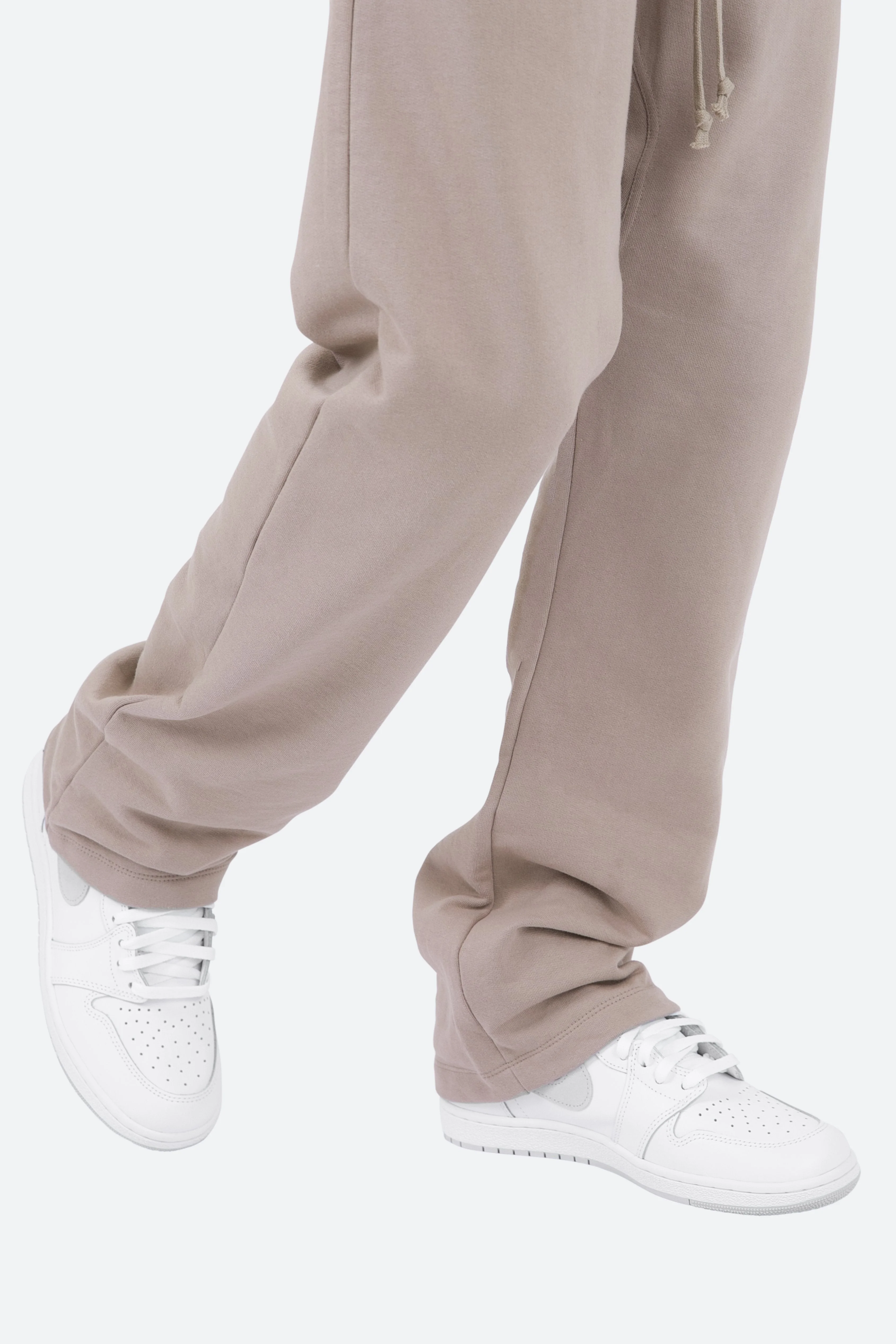 the Drop Crotch?Sweatpants?are?designed with a relaxed fit throughout with a drop crotch, featuring an elasticized self waist with tonal cotton?drawstrings, and finished?with standard leg opening with no cinching.