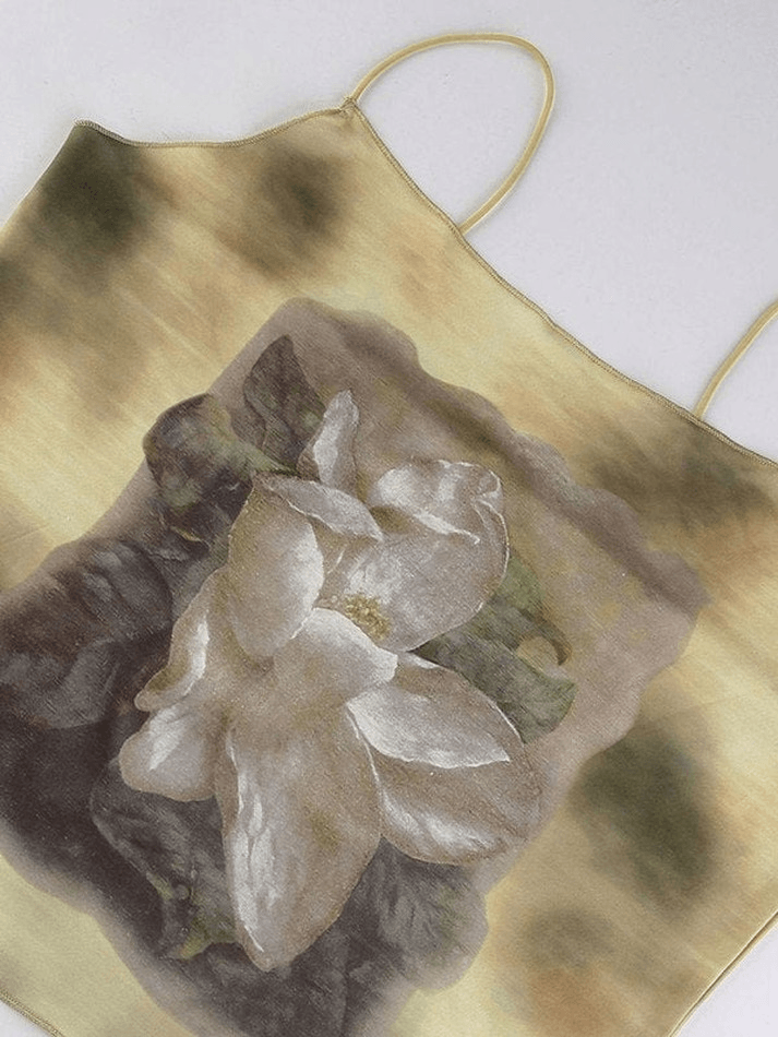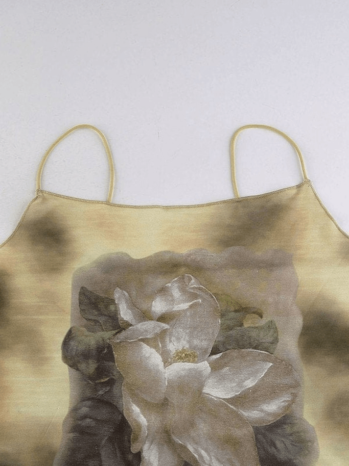 Description: Easily dressed up with these perfect versatile y2k cami tops. Shaped to a fitted silhouette, features ultra-thin shoulder strap styling, with dyed inspired & floral pattern print design.