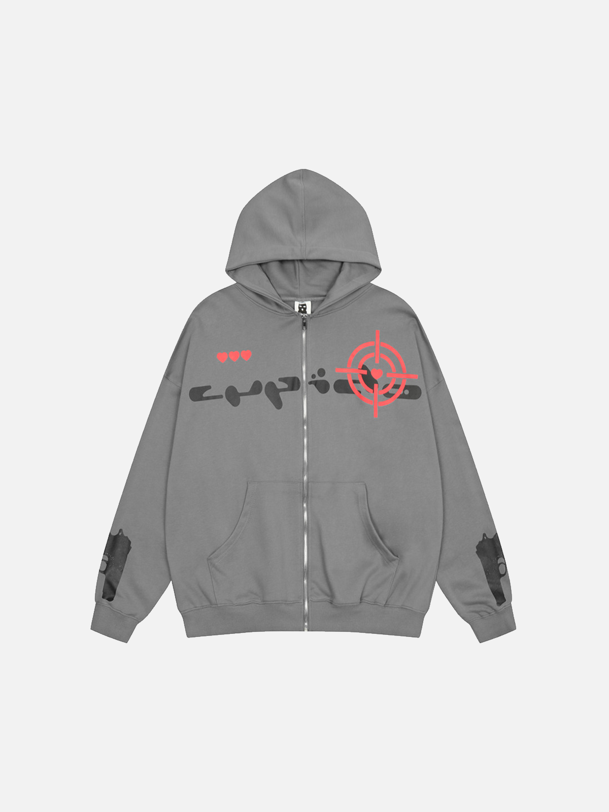 Faire Echo "Aiming At Heart" Print Zip Up Hoodie