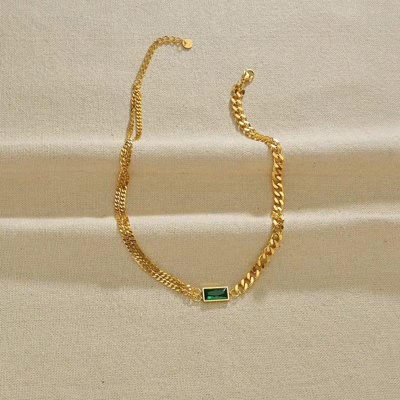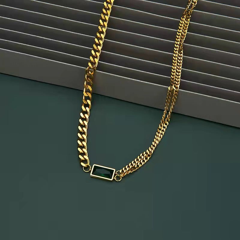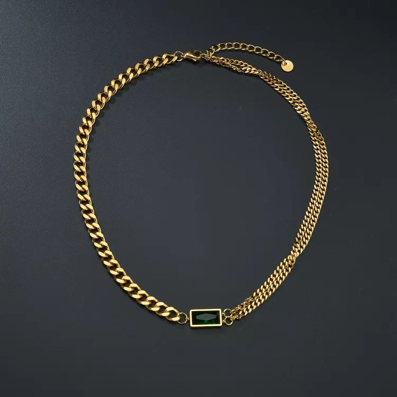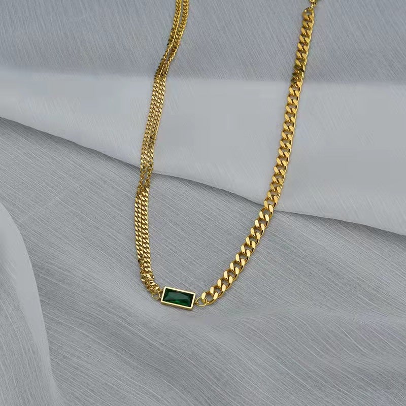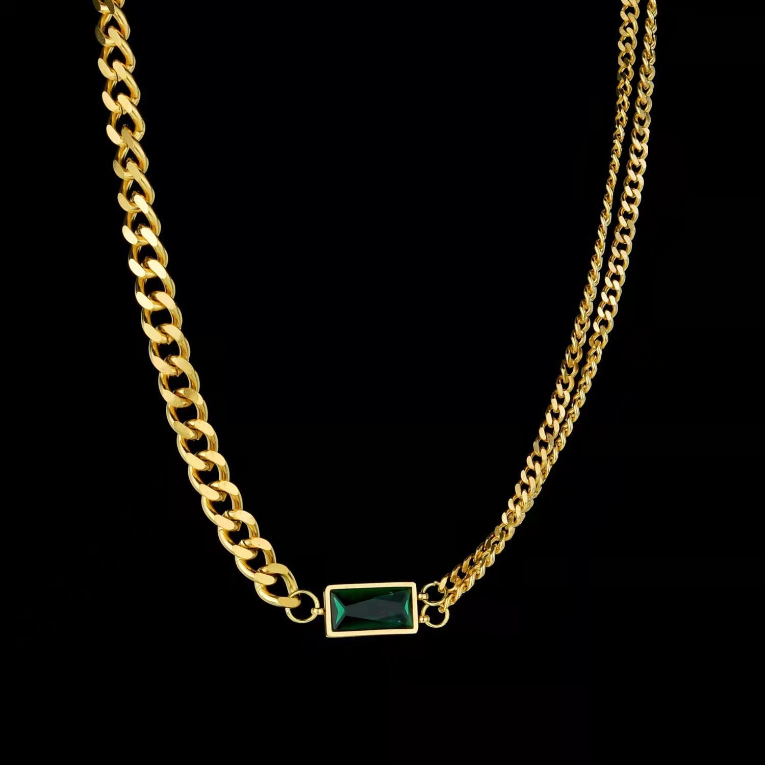 - Material: Made of 316L Steel and 18k gold plated/Green cz Dimond
