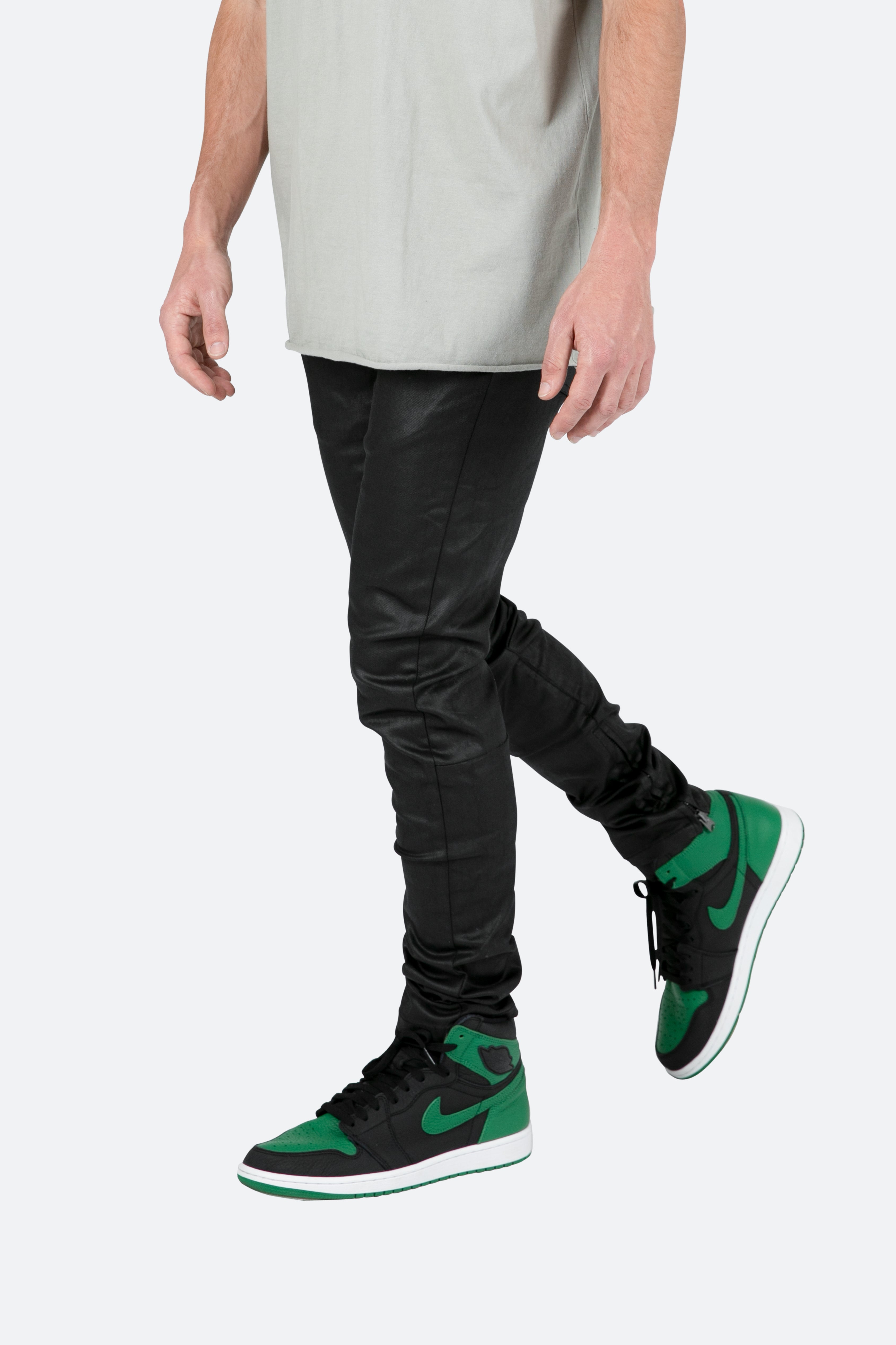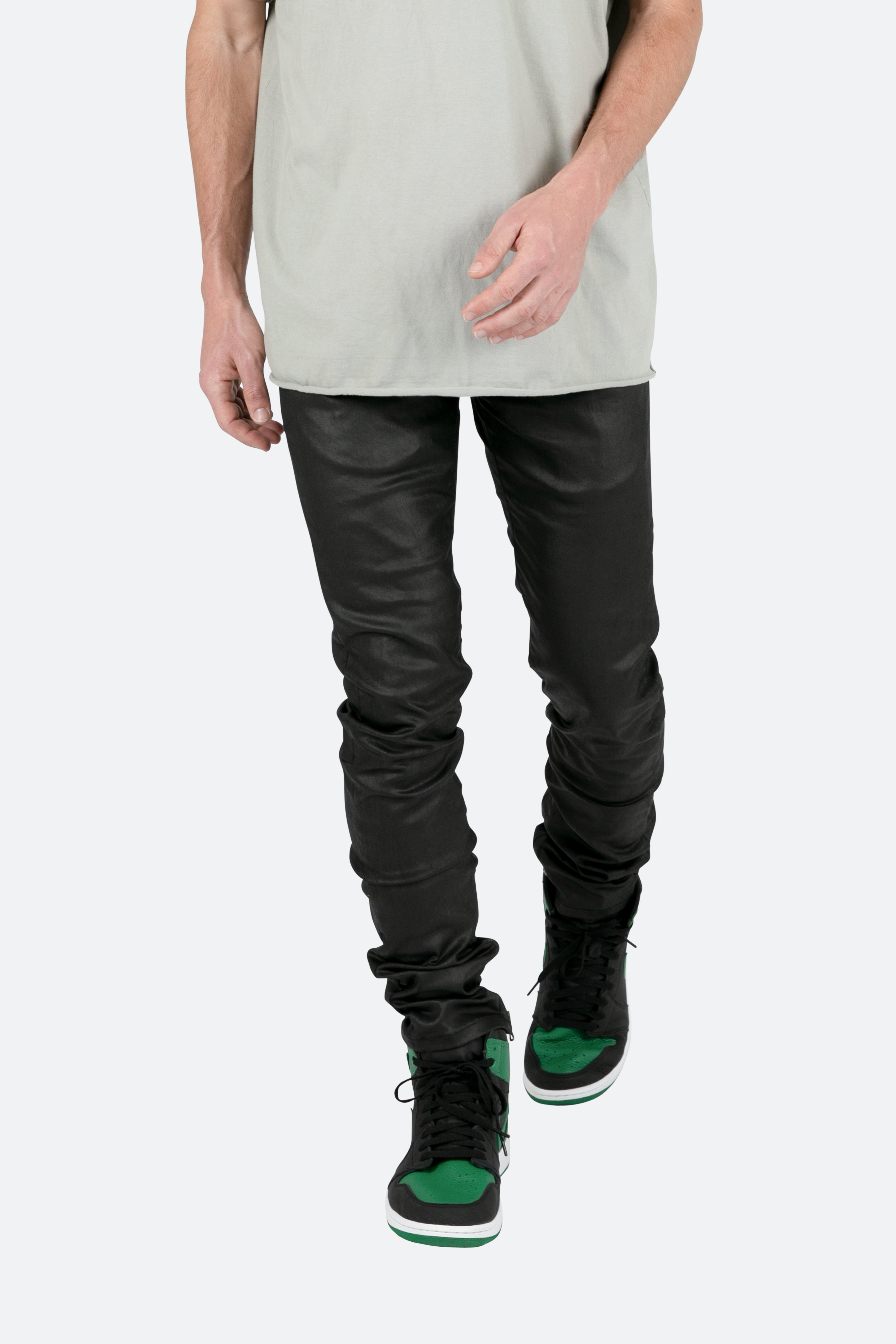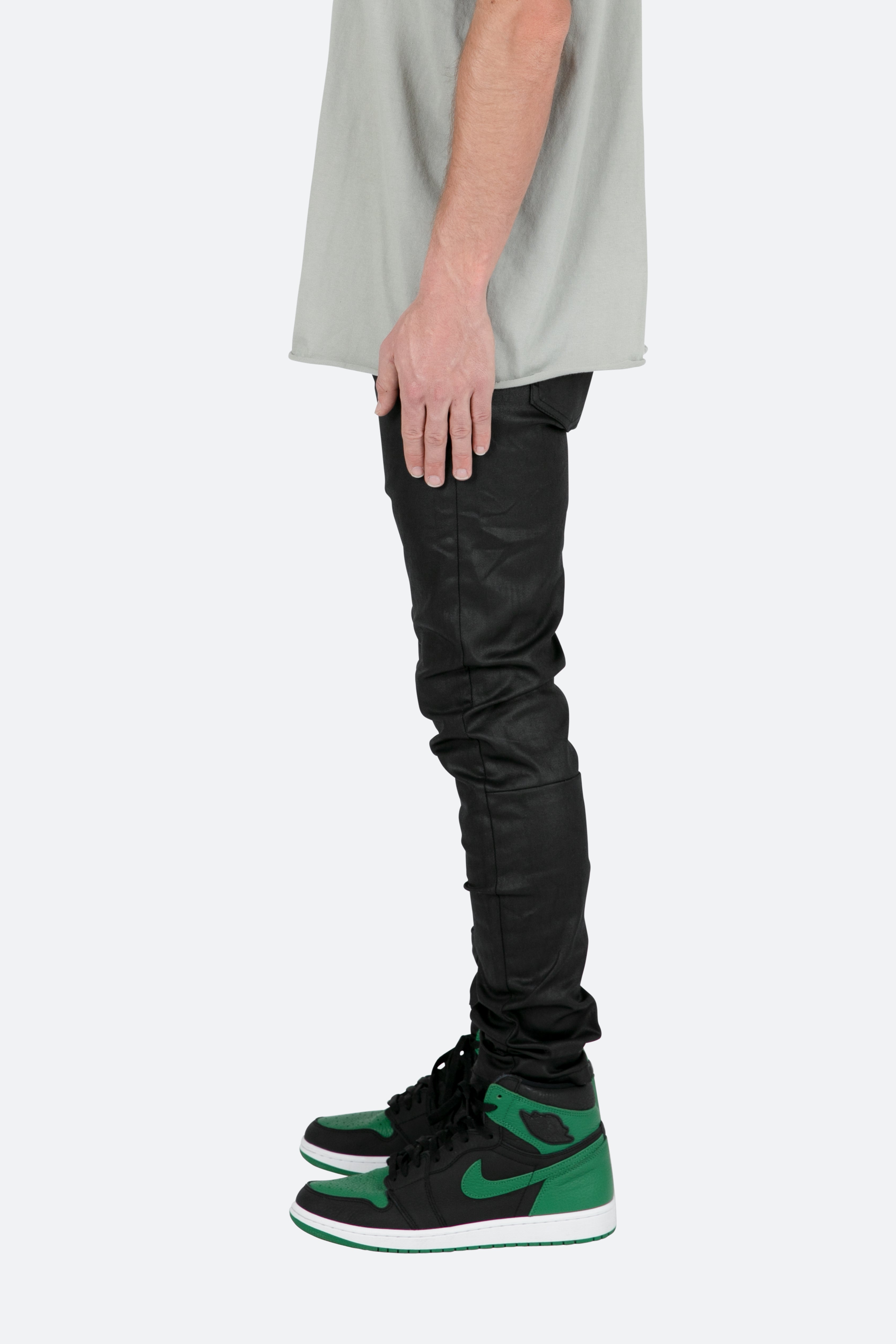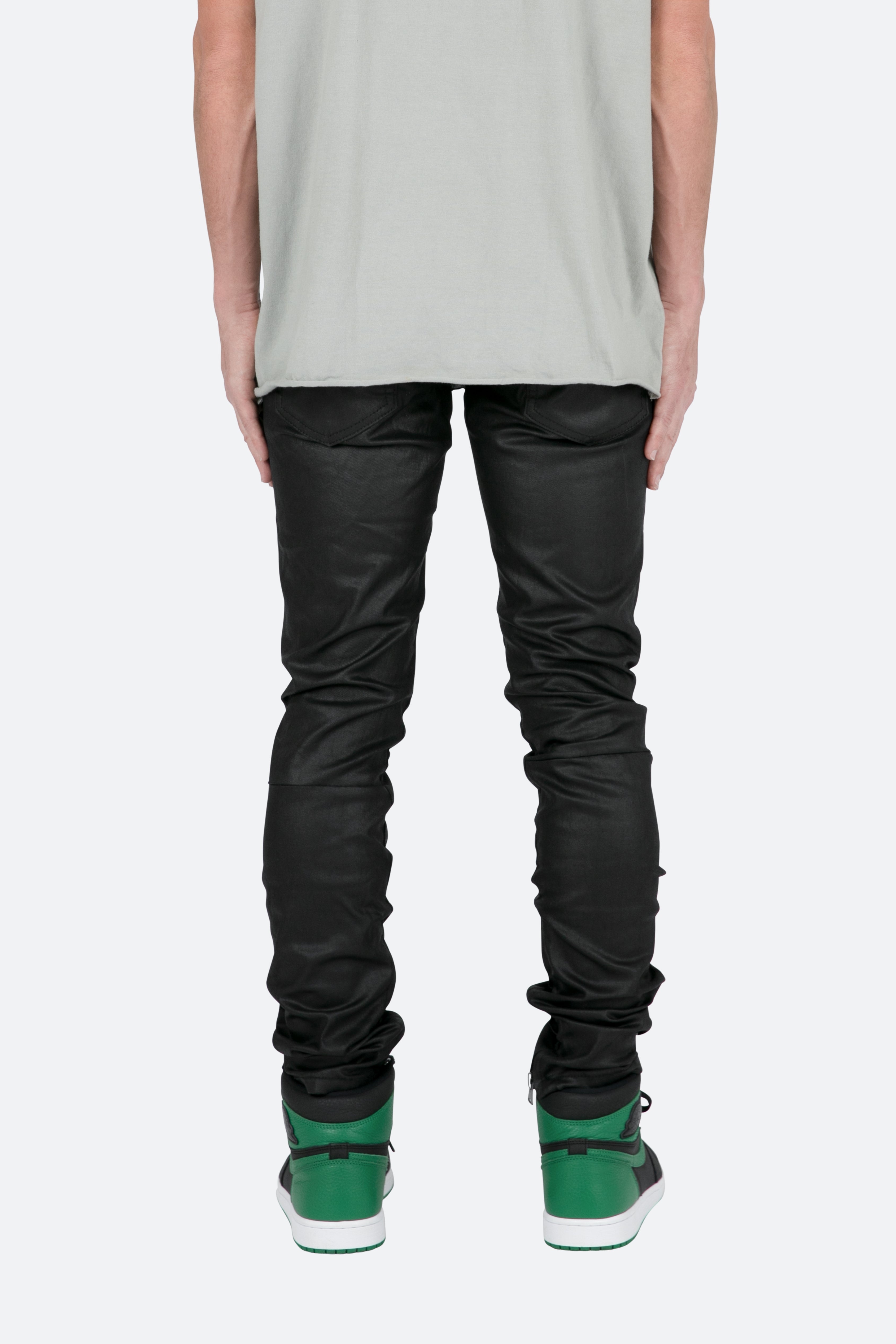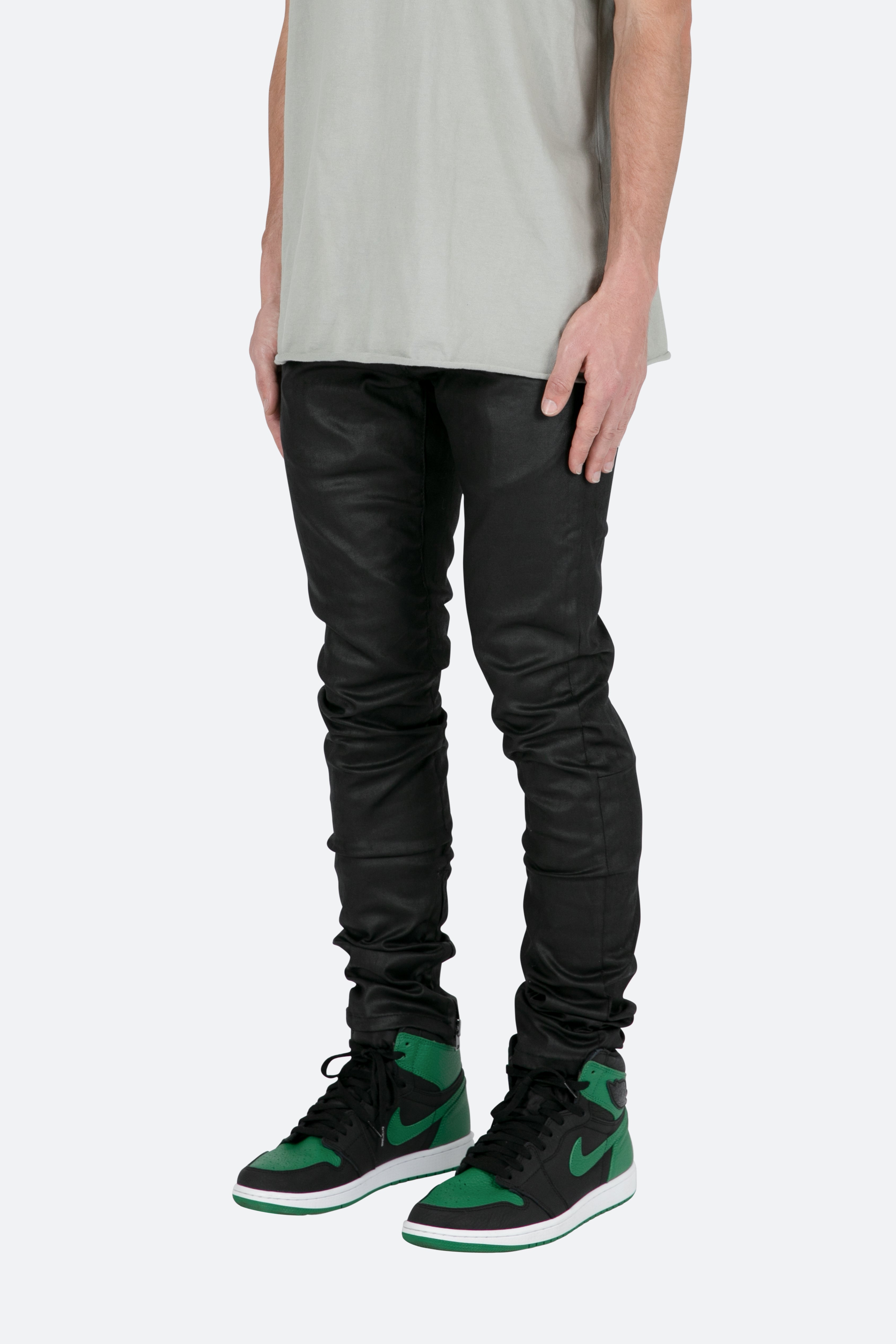 the black m11 stretch denim is designed with a relaxed fit through the thigh that tapers from the knee to the ankle with a black?poly-cotton coating, finishing off with a 10" concealed zipper on the inseam and a rear calf panel for a carefully optimized fit.