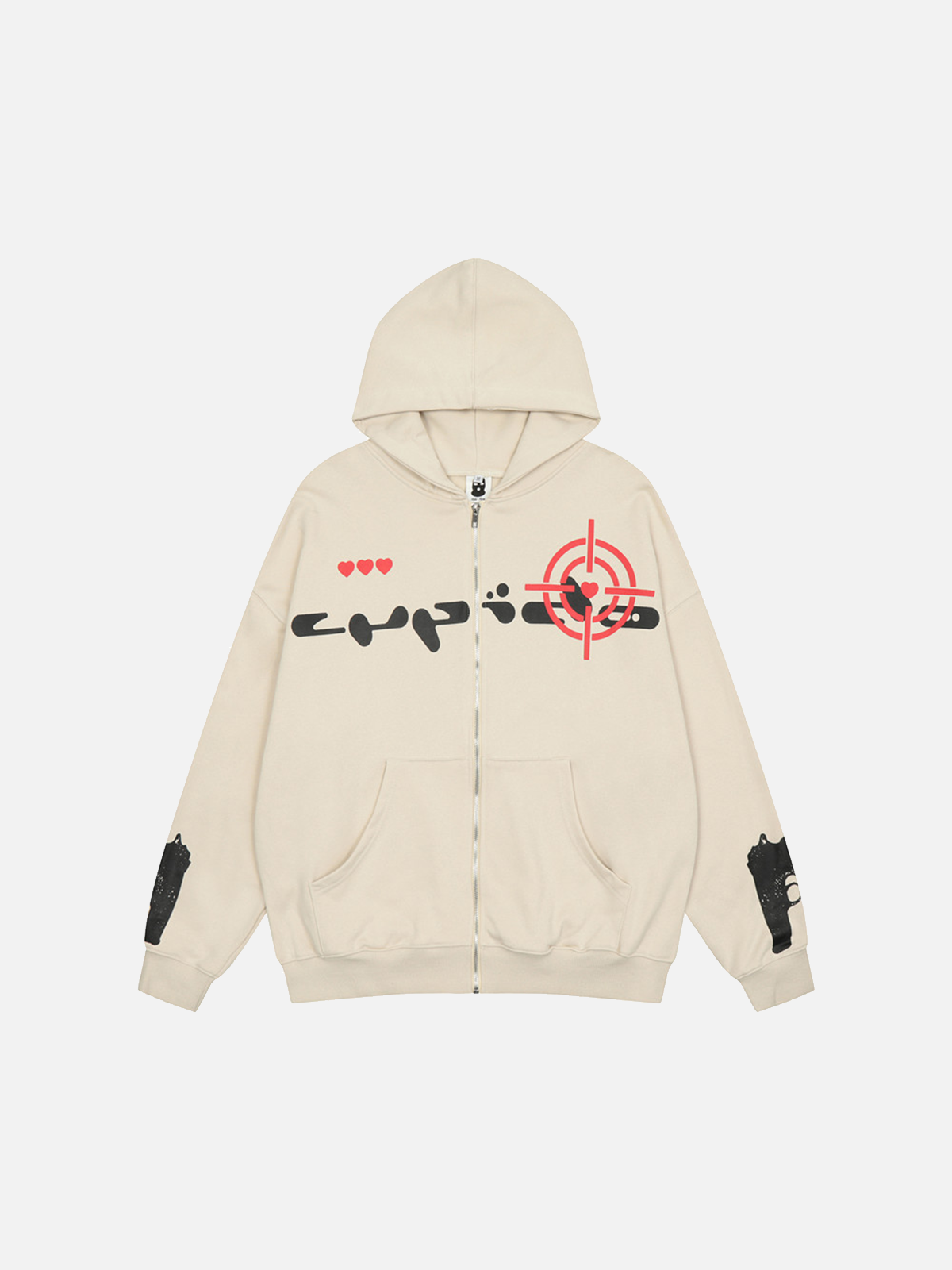 Faire Echo "Aiming At Heart" Print Zip Up Hoodie