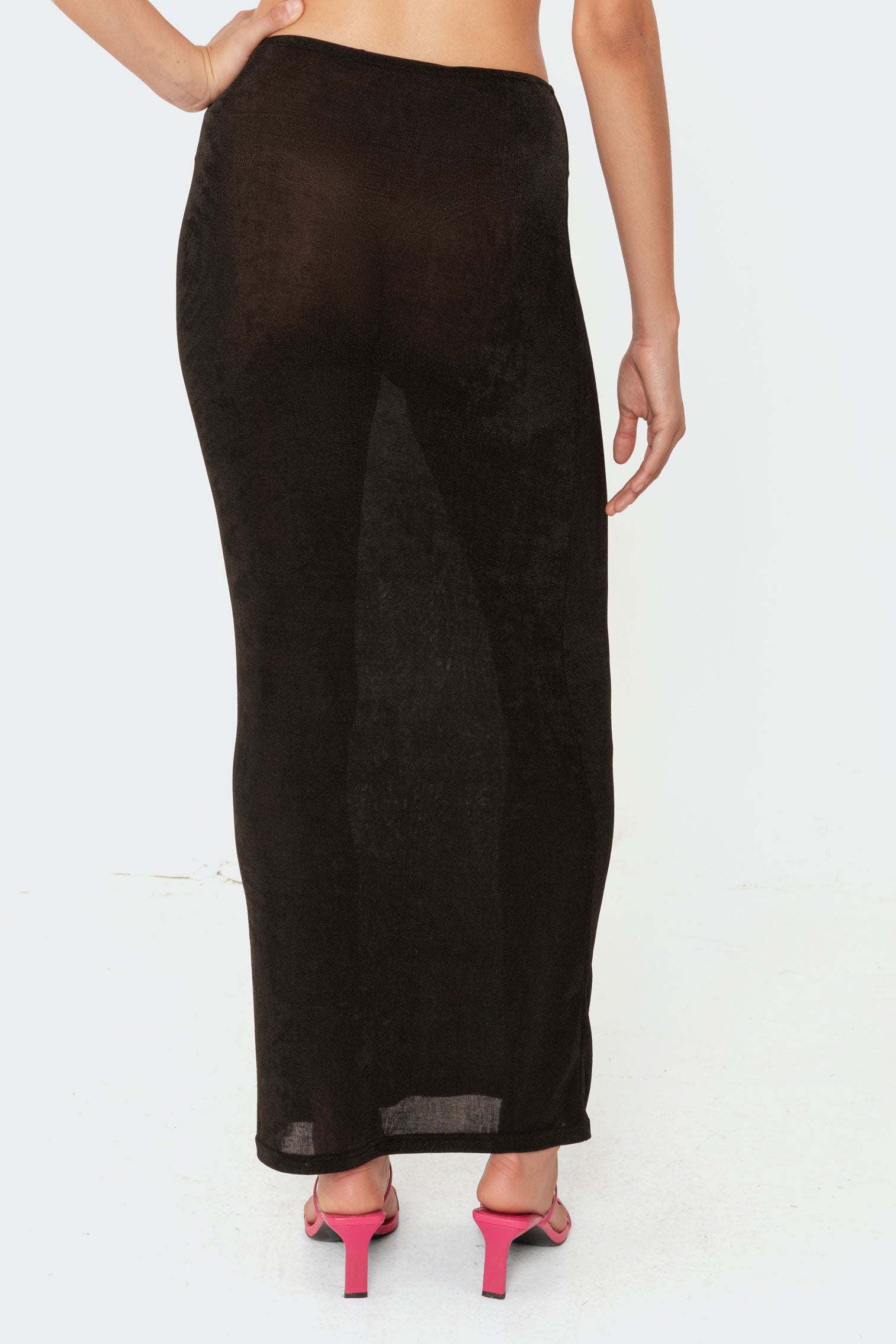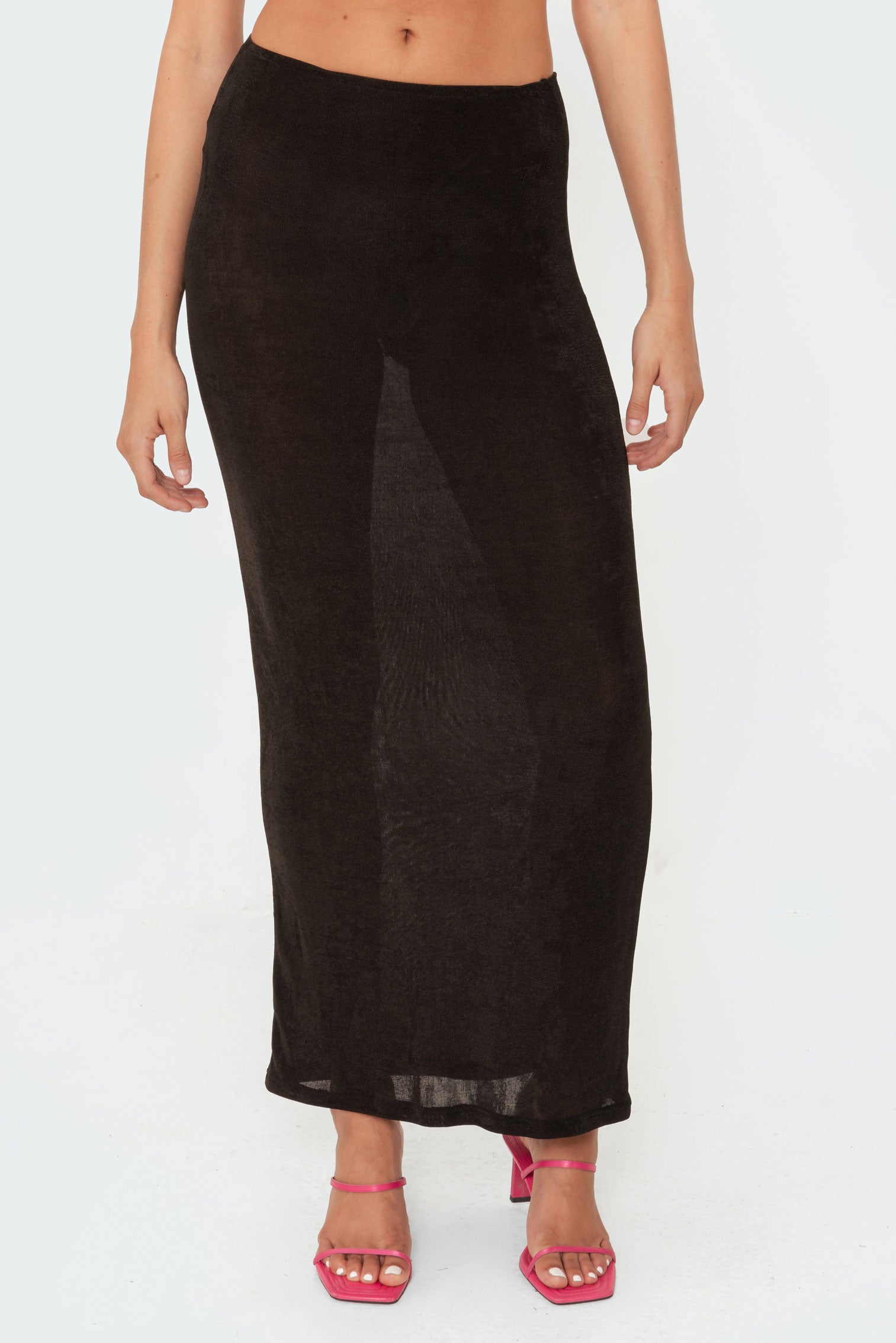 Glam up your skirt collection with this stunning slinky maxi option! Made from a shiny stretch fabric with an elasticated waist for extra comfort, you'll be sure to turn heads wherever you go.